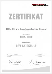 Die Ski- und Snowboardschule des Skiclub Singen e.V. erfüllt wiederholt die DSV Qualitätskriterien und ist somit erneut als „DSV Skischule“ ausgezeichnet!